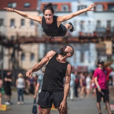 Die Artistin liebt die besondere Nähe zum Publikum, diesen be- sonderen, magischen Kontakt und so führte sie ihr Weg raus aus dem Theater, hinaus auf die Straße. Die „Lady in Red“ dreht sprichwörtlich am Rad und das Publikum wird dabei förmlich mitgerissen. In ihrer atem- beraubenden Show am Cyr Wheel begeistert sie das Publikum hautnah und unter- hält mit Geschichten und Einblicken hinter die Kulissen.